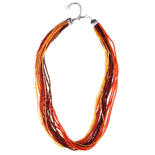 The perfect basic necklace because nothing compliments an outfit more that a cascade of accenting colors. Complimenting this piece is the personally signed profile card of the artisan who hand-made this piece in her home.